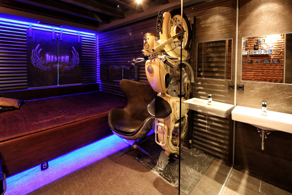Das Bikerzimmer ist was für harte Jungs, klick dich durch die Bilder und du wirst das Öl riechen.